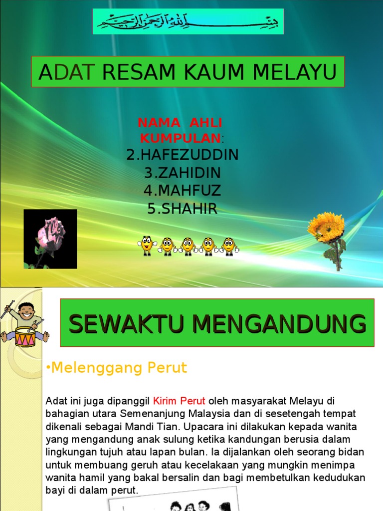 Adat Resam KEPELBAGAIAN BANGSA MALAYSIA Malaysia mepunyai pelbagai kaum dan adat resamantara kaum yang utama ialah kaum melayucinadan india Kepentingan adat resam di dalam hidup masyarakat tidak kira apa bangsa sekalipun tidak dapat dinafikan. AIRUL AIMAN BIN ANUAR 25DEE19F1036 2. Sharifah norfarhana binti syed li nor azlyn binti zulfahmi afiqah natasya binti.
